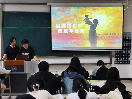 “同學(xué)們,猜一猜明天是什么節(jié)日啊?”“母親節(jié)!”5月11日,新聞傳播學(xué)類專業(yè)2023(7)、(8)班在K202教室開展以“愛要說出口,感恩不等待”為主題的團建活動。活動開始前,活動負責(zé)人、新聞傳播學(xué)類專業(yè)2023(7)、(8)班的班長楊雨霏、朱研溪提前為每位同學(xué)準備好信紙和信封。朱研溪說:“我們希望通過寫信這種傳統(tǒng)而深情的溝通方式,讓同學(xué)們勇敢表達自己的心聲,將對母親的愛訴說于筆尖。”學(xué)生們觀看一段關(guān)于母愛的感人短片后,...
